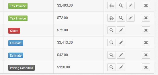 The various colour codes indicate the type of the customer form viz. (Tax) Invoice, Quote, Estimate and Pricing Schedule. From this list you can either